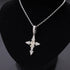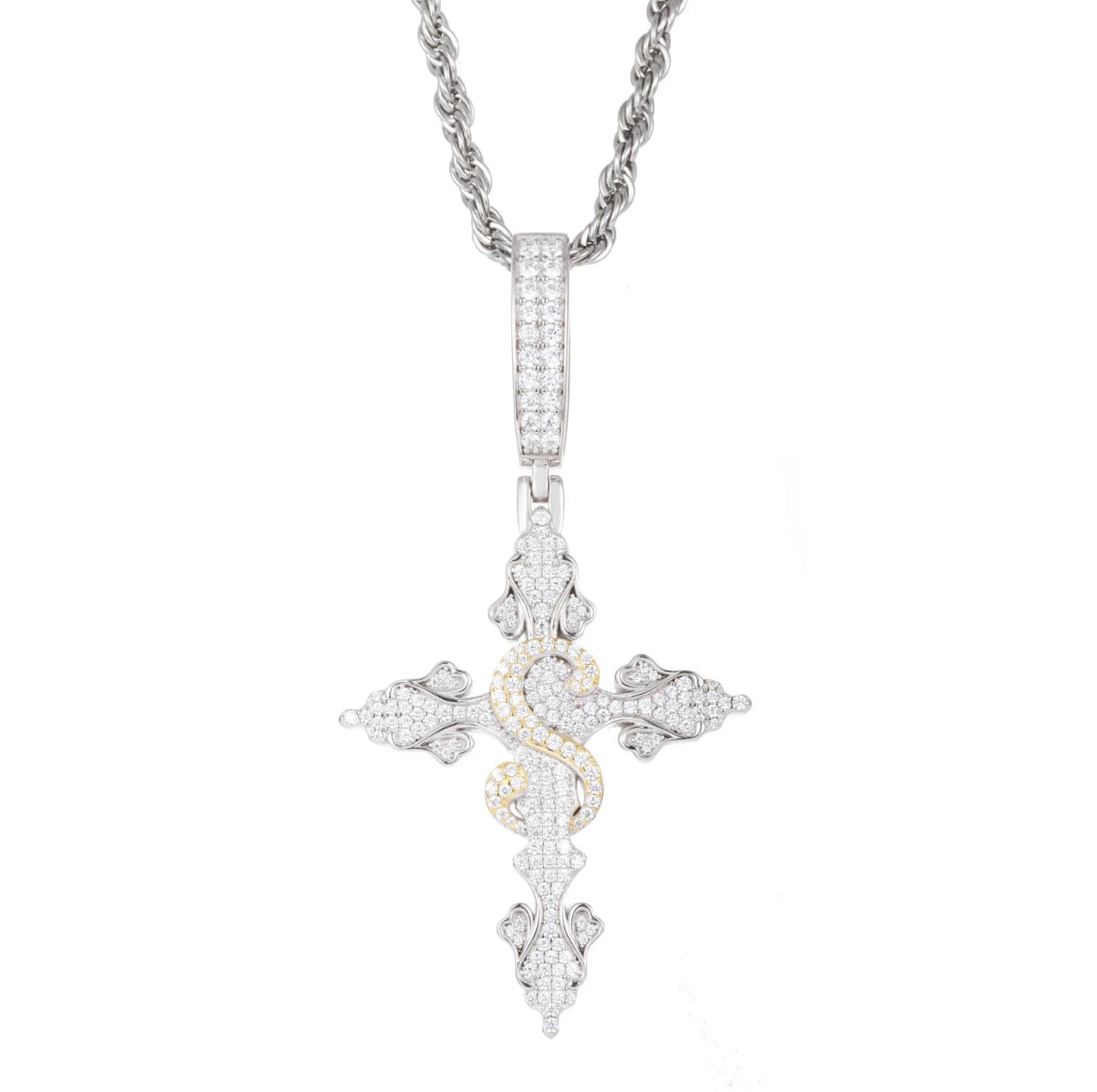 Make a bold statement of faith, fortune, and luxury with our Dollar Sign Cross Pendant. Crafted from premium materials and handset with VVS lab-created stones, this pendant delivers the brilliance of diamonds without the premium price. Finished in your choice of white gold or yellow gold plating, it shines with exceptional clarity and sparkle.